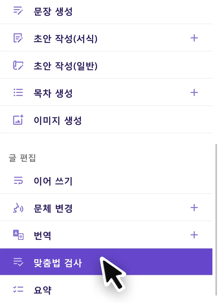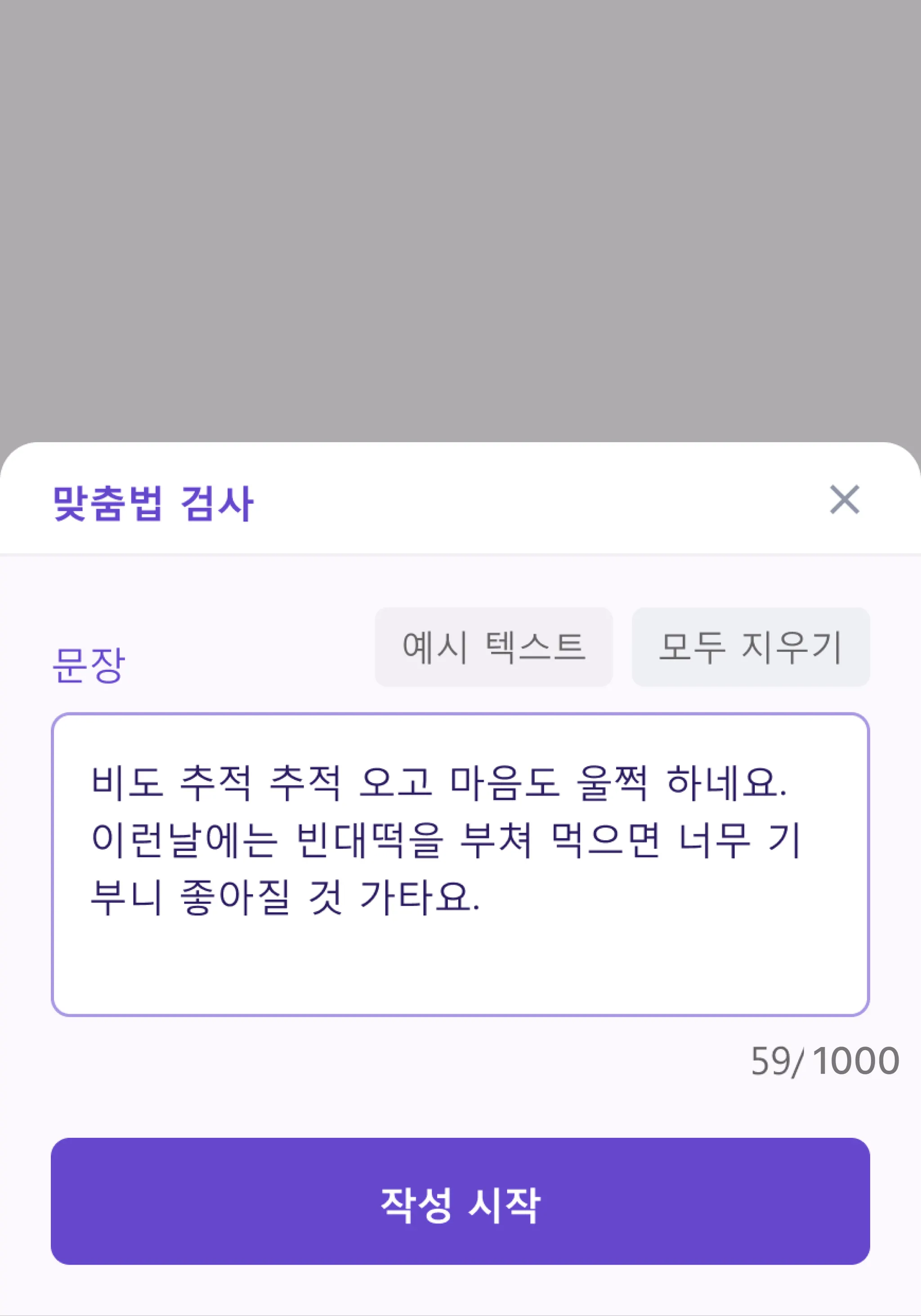 맞춤법 검사 공식 지원 언어는 한국어, 영어만 지원합니다.