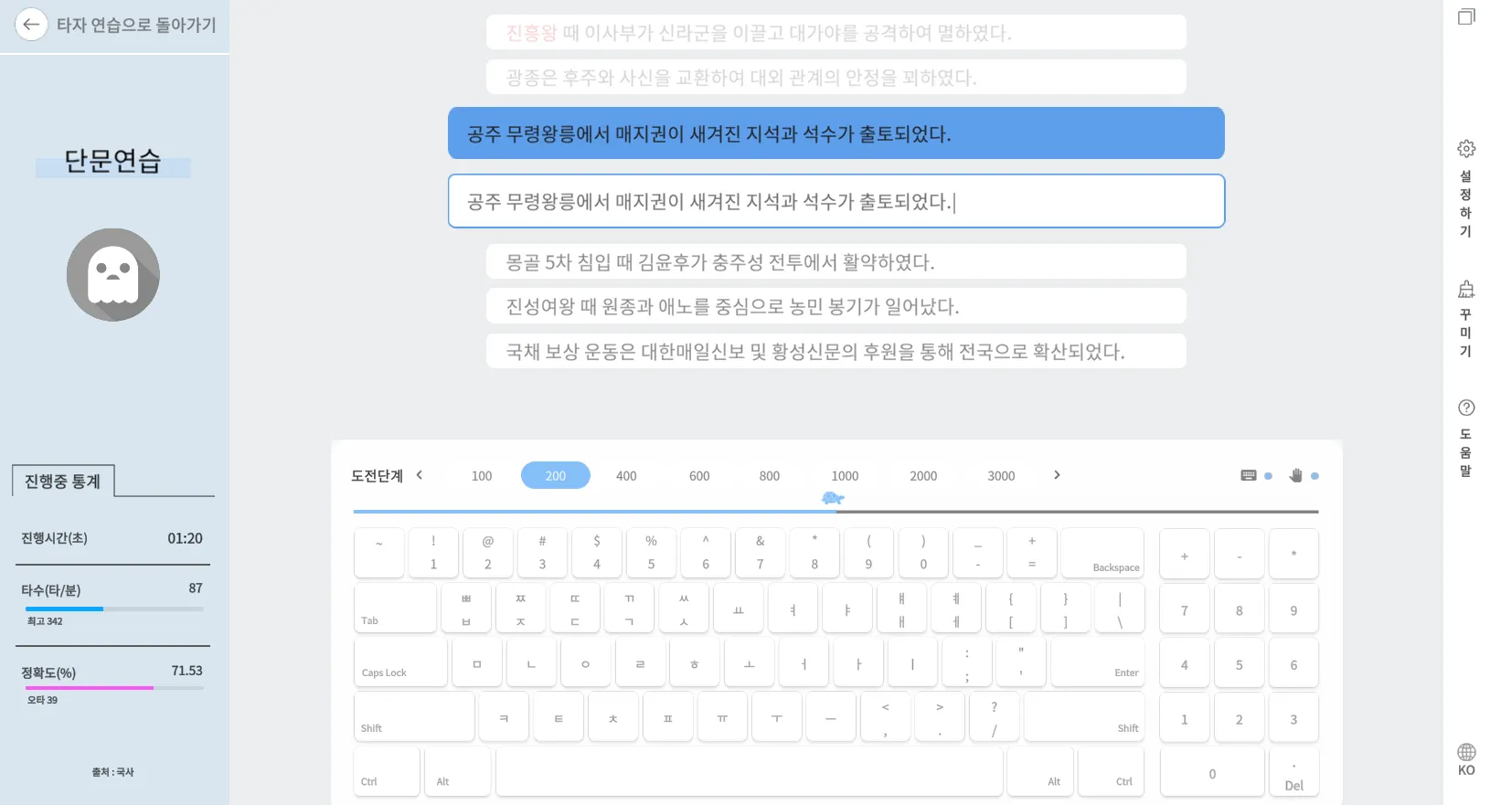 Thông qua Hancom Taja, bạn có thể tìm hiểu lịch sử Hàn Quốc từ thời kỳ đồ đá cũ đến thời kỳ hiện đại, đồng thời cải thiện tốc độ đánh máy của mình bằng cách luyện tập câu ngắn. Bài tập này không chỉ giúp bạn chuẩn bị cho kỳ thi TOPIK mà còn là cách tuyệt vời để làm phong phú trải nghiệm của bạn khi đến thăm các bảo tàng và phòng trưng bày nghệ thuật tại Hàn Quốc!