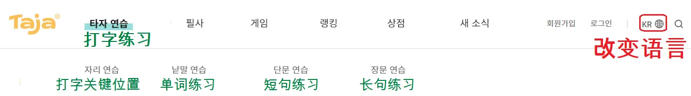 您无需登录即可在线练习打字。但是,在您注册 Hancom Taja 并参加在线打字练习后,您可以跟踪和查看您的打字技能进步或使用历史记录。