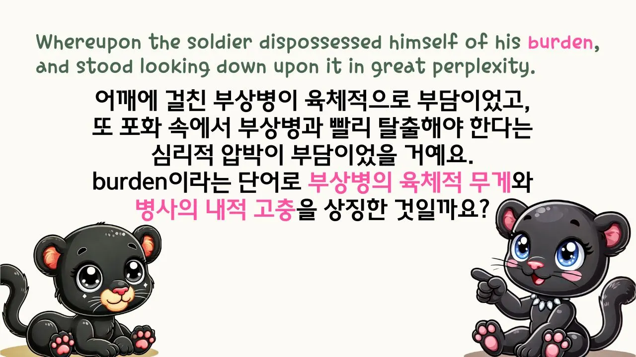 burden이라는 단어로 부상병의 육체적 무게와 병사의 내적 고충을 상징한 것일까요?