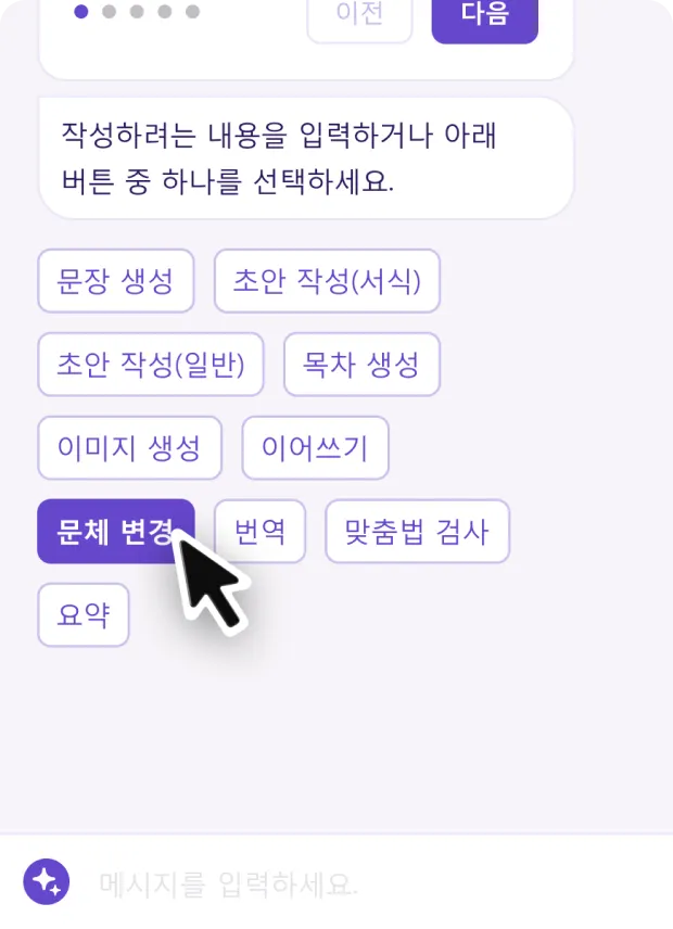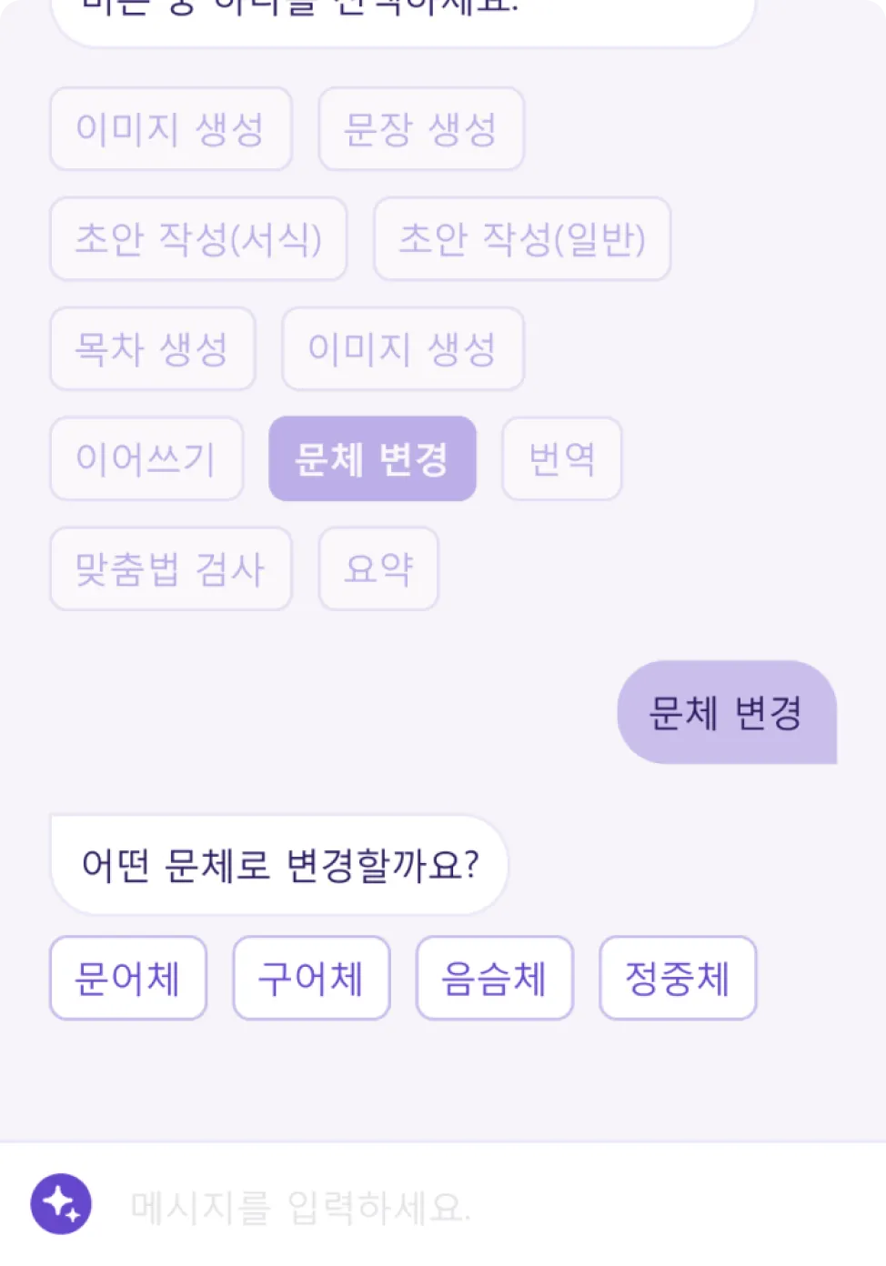 특정 문장을 원하는 문체로 변경 가능합니다.