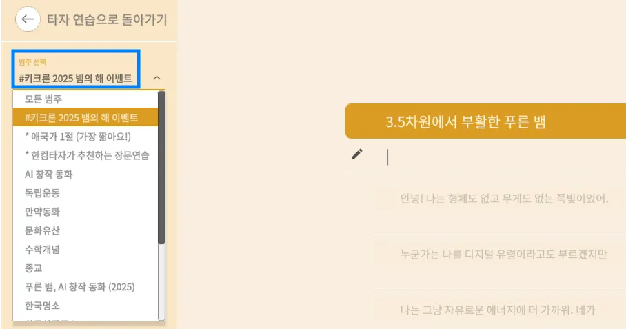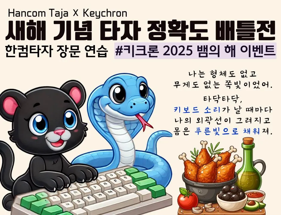 한컴타자 장문 연습의 범주에서 #키크론 2025 뱀의 해 이벤트를 선택해 주세요.
