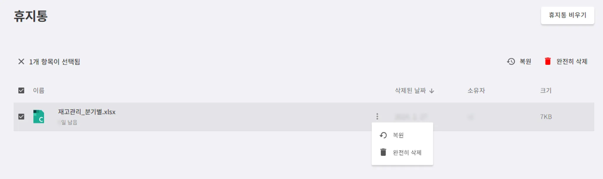 휴지통에 있는 파일은 30일 후, 완전히 삭제됩니다.