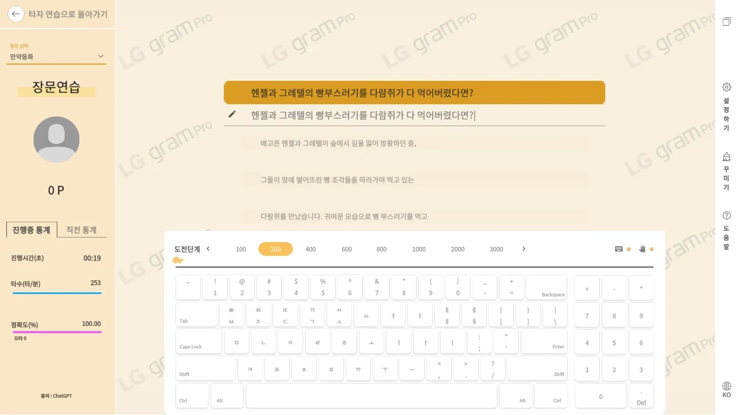 로그인하지 않고 바로 온라인 타자 연습을 이용할 수 있어요. 로그인하면 타자 실력 향상이나 참여도 등 활동 내역 및 패턴을 확인할 수 있어요.