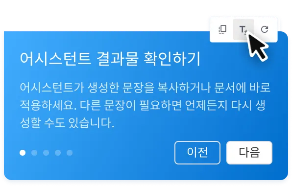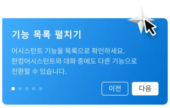 한컴오피스 Web 셀/쇼/워드에 접속 후, 기본 도구 상자에 어시스턴트 아이콘을 누르면 챗봇이 실행됩니다.