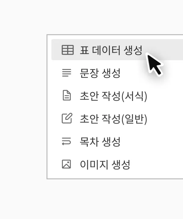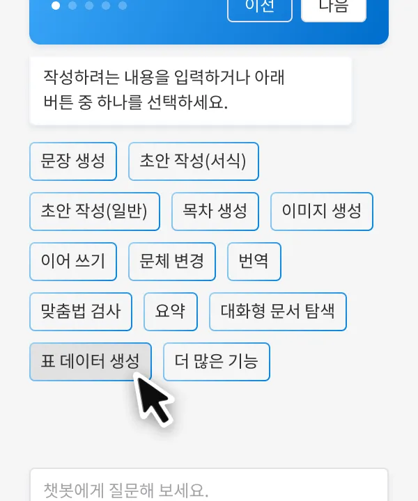 2. 한컴독스 AI를 통해 표 데이터 만들기 사용하기