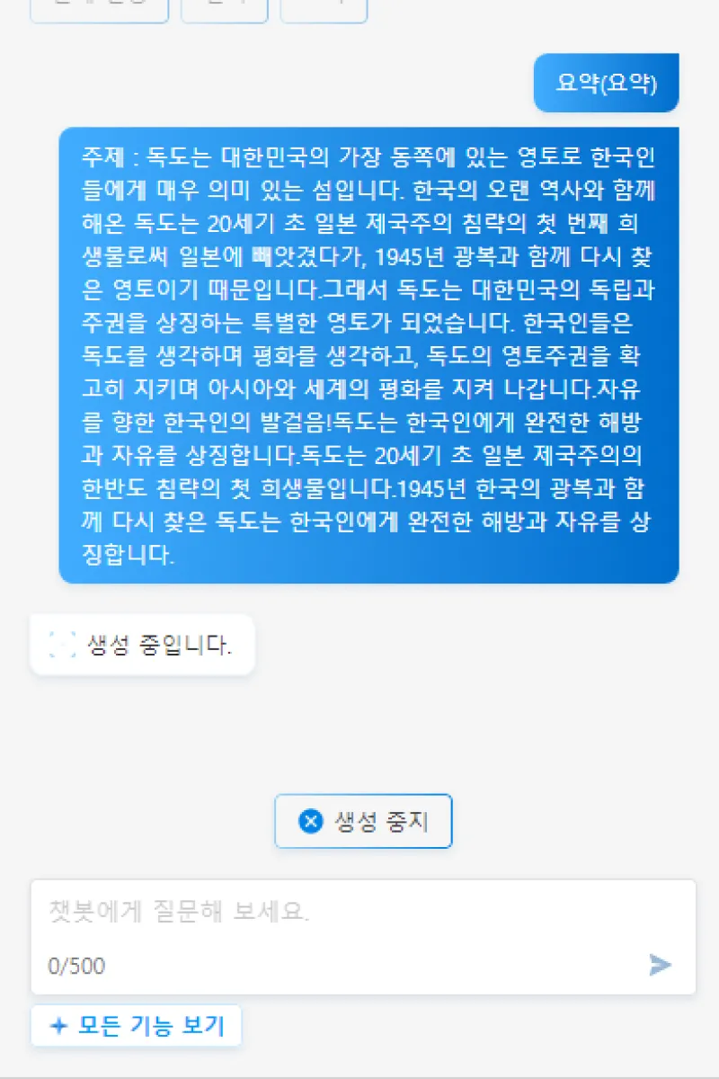 챗봇을 이용해서 문서를 요약할 수 있습니다.