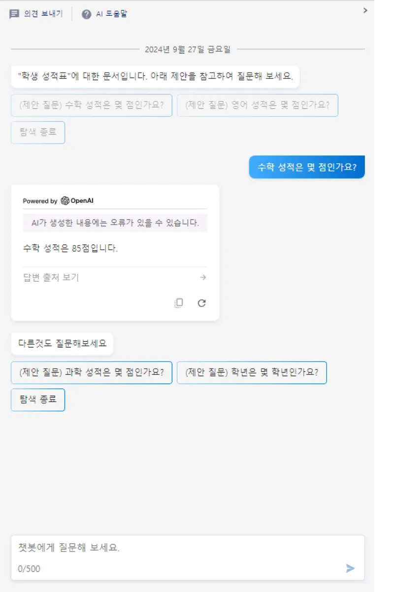 문서의 내용을 학습하여 대화하듯 문서의 내용을 기반으로 답변합니다.