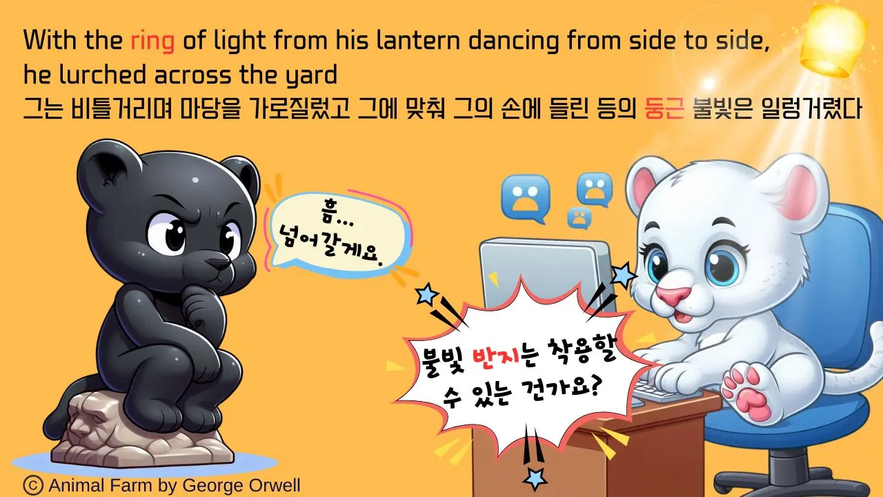 동물농장의 렉사일(Lexile) 지수는 1170L이에요. 동물들의 해학적인 대사와 섬세한 묘사를 음미하려면 영어 실력만이 아니라 배경 지식도 필요해요.