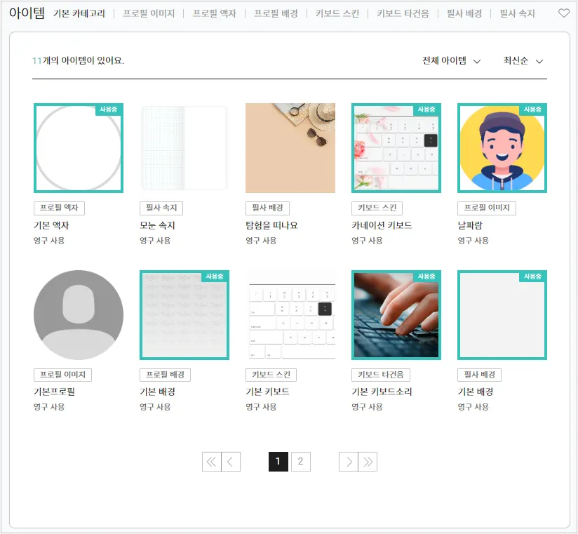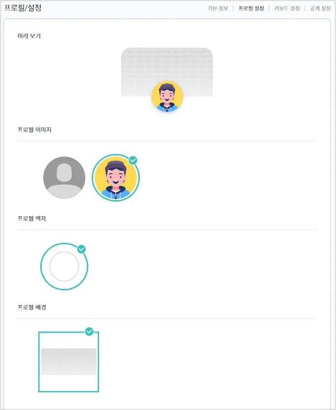 [프로필 설정]을 통해 프로필 이미지, 액자, 배경 등을 설정할 수 있습니다.