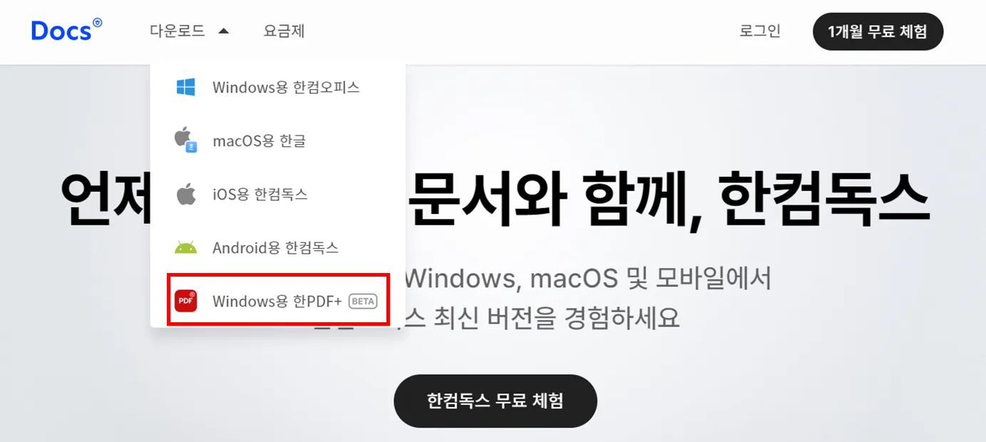 한컴독스를 구독하는 고객님께서는 한PDF+ 제품을 다운로드해서 이용하실수 있습니다.