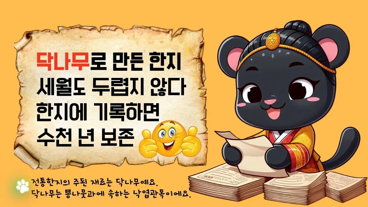 닥나무의 껍질로 만든 한지는 섬유질이 촘촘해서 내구성이 좋아 수천 년 보존된다고 해요. 친환경적이고요!