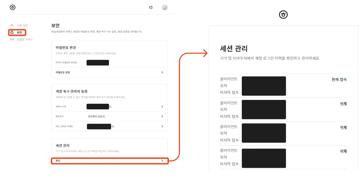 계정별로 사용한 기기 및 로그인 이력이 확인하고 싶다면 아래 메뉴에서 확인해주세요