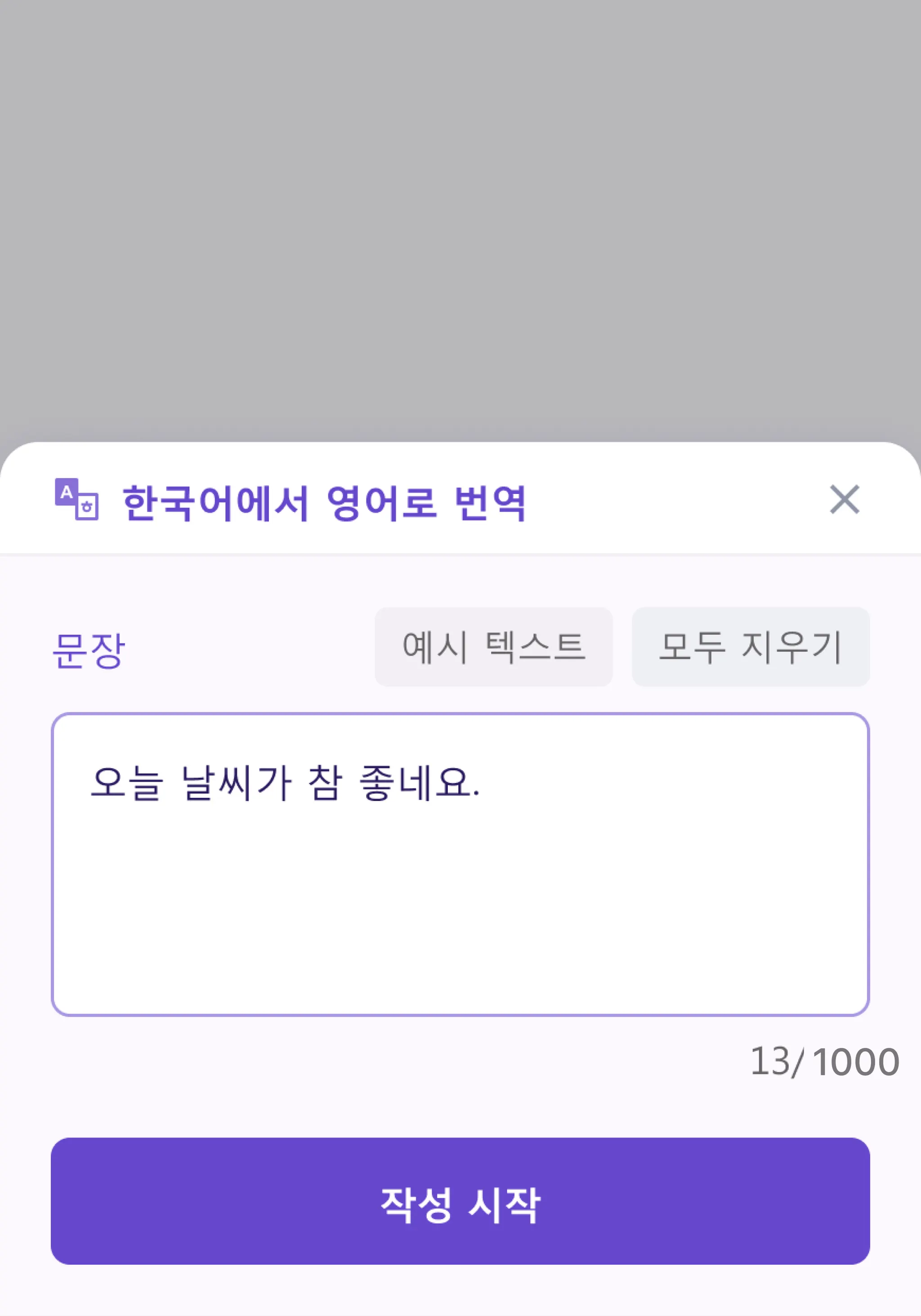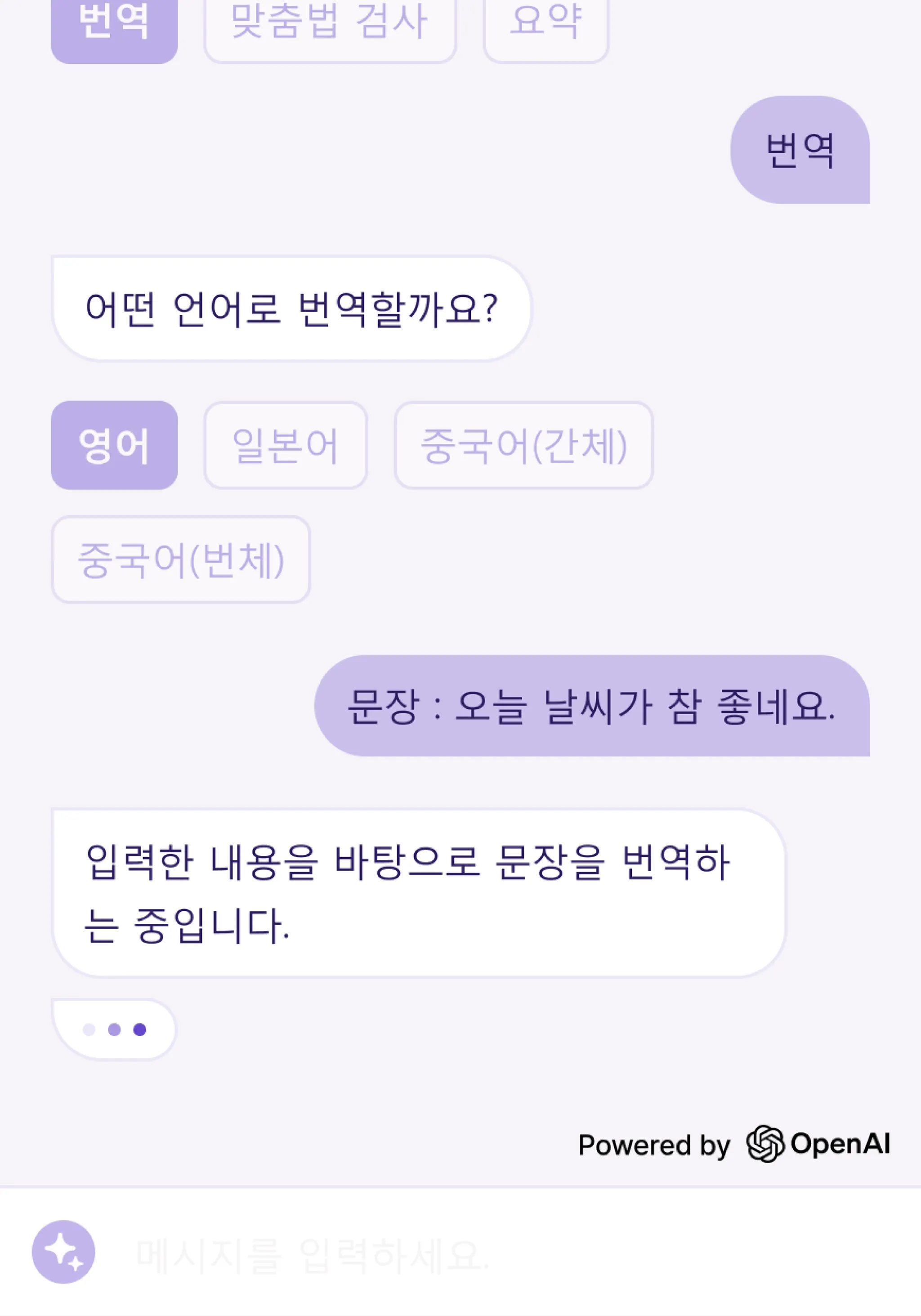 번역 시작 언어는 한국어로 실행되며, 챗봇 내 언어는 한국어만 지원합니다.