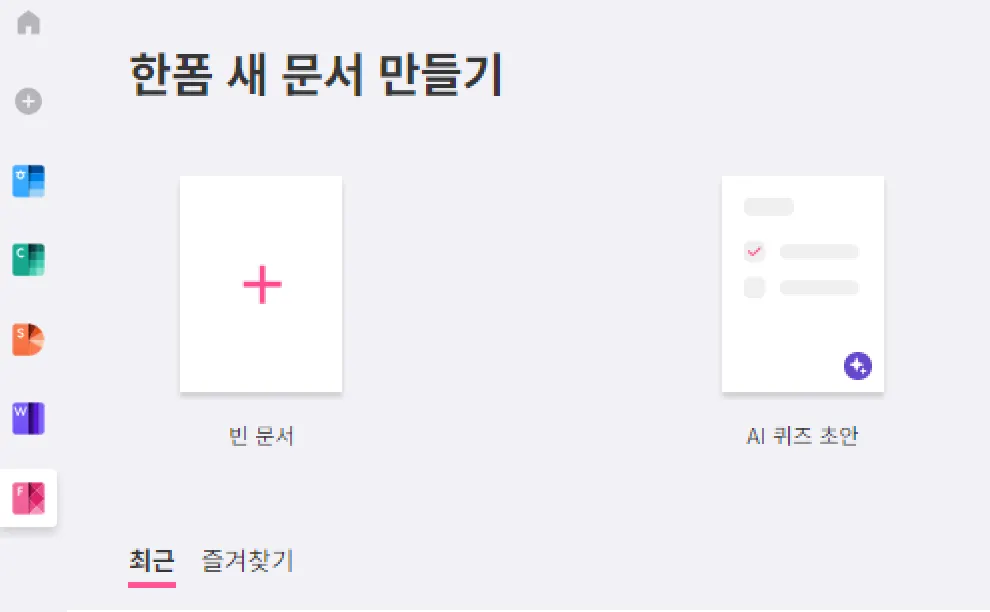 한폼 메뉴에서 AI 퀴즈 기능을 이용할 수 있습니다.