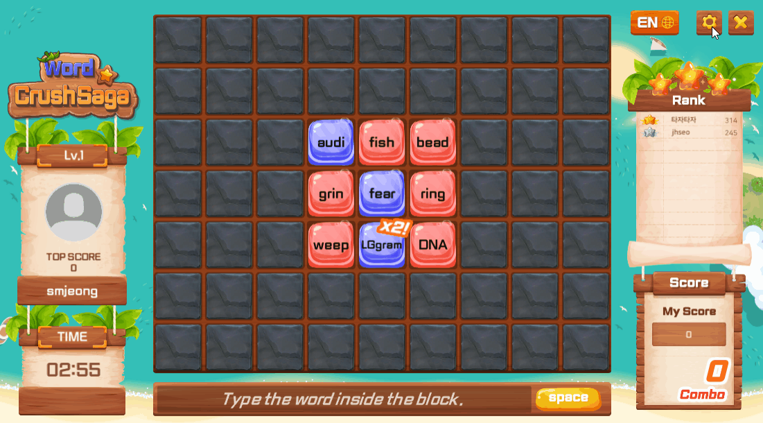 Welcome to the world of Word Crush Saga! Sharpen your typing skills to the beat of captivating background music and thrilling sound effects. You can enjoy the timeless appeal of Tetris-style typing game, Word Crush Saga. Try it now and see how fast your fingers can fly!