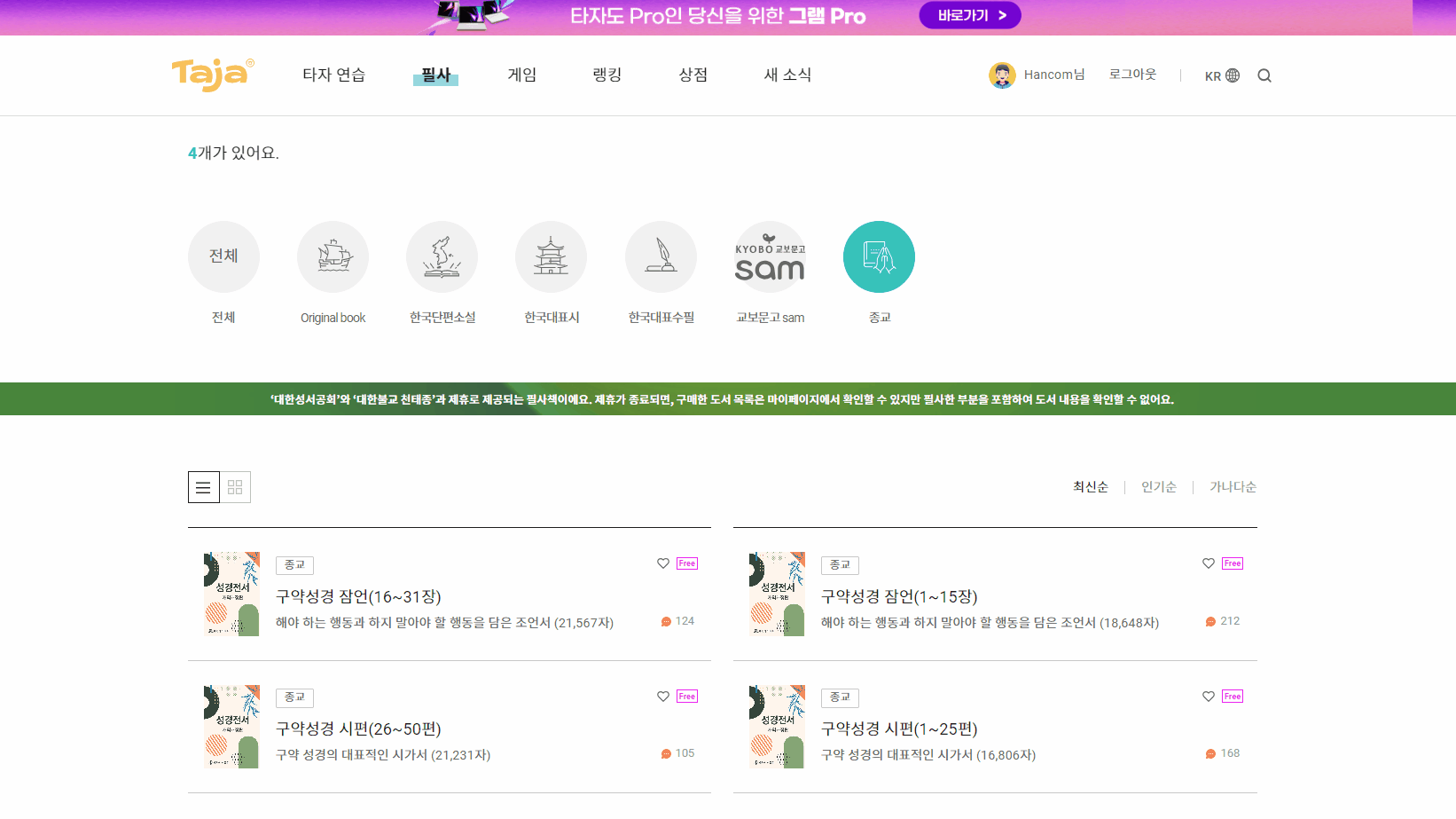 마음에 드는 종교 필사를 선택하고 플레이하기