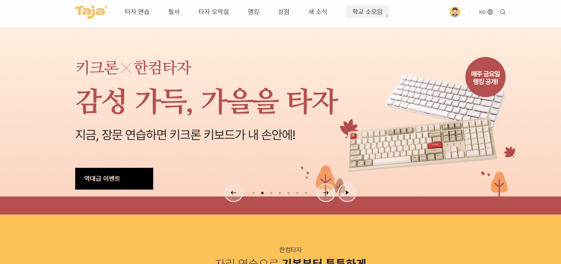 타자에 접속하신 후, 상단 오른쪽 ‘로그인’버튼을 클릭하시면 로그인하실 수 있습니다.