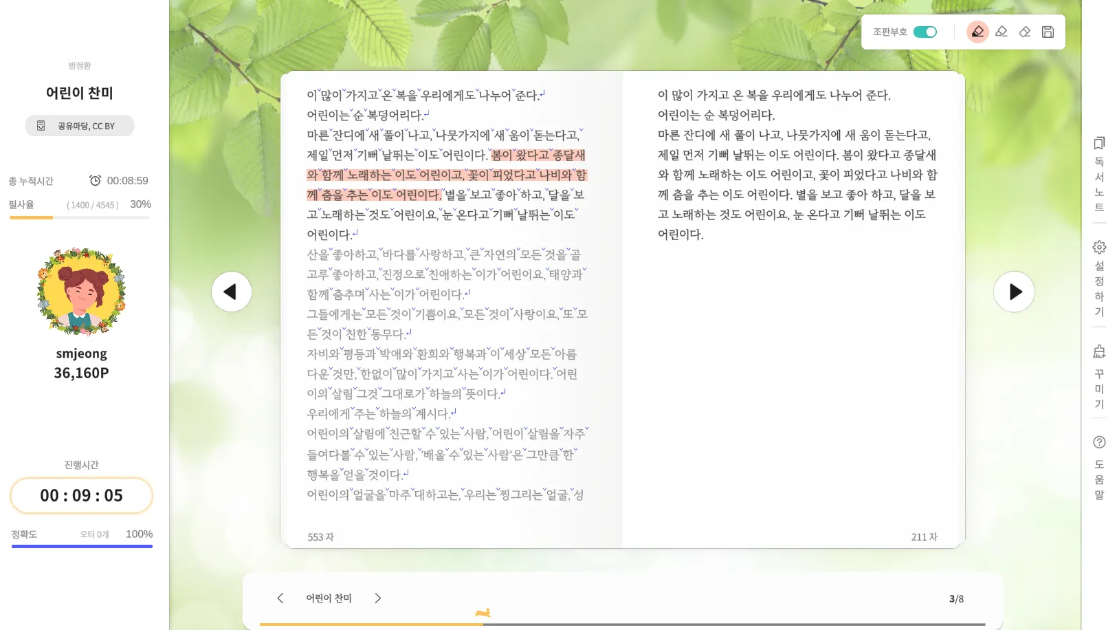 한컴타자에서 어린이 찬미를 필사하면서 한때 어린이였던 과거의 나를 떠올려 보세요. 한컴타자 필사 화면을 보면서 낭독하는 것만으로도 평온함을 느낄 수 있을 거예요.