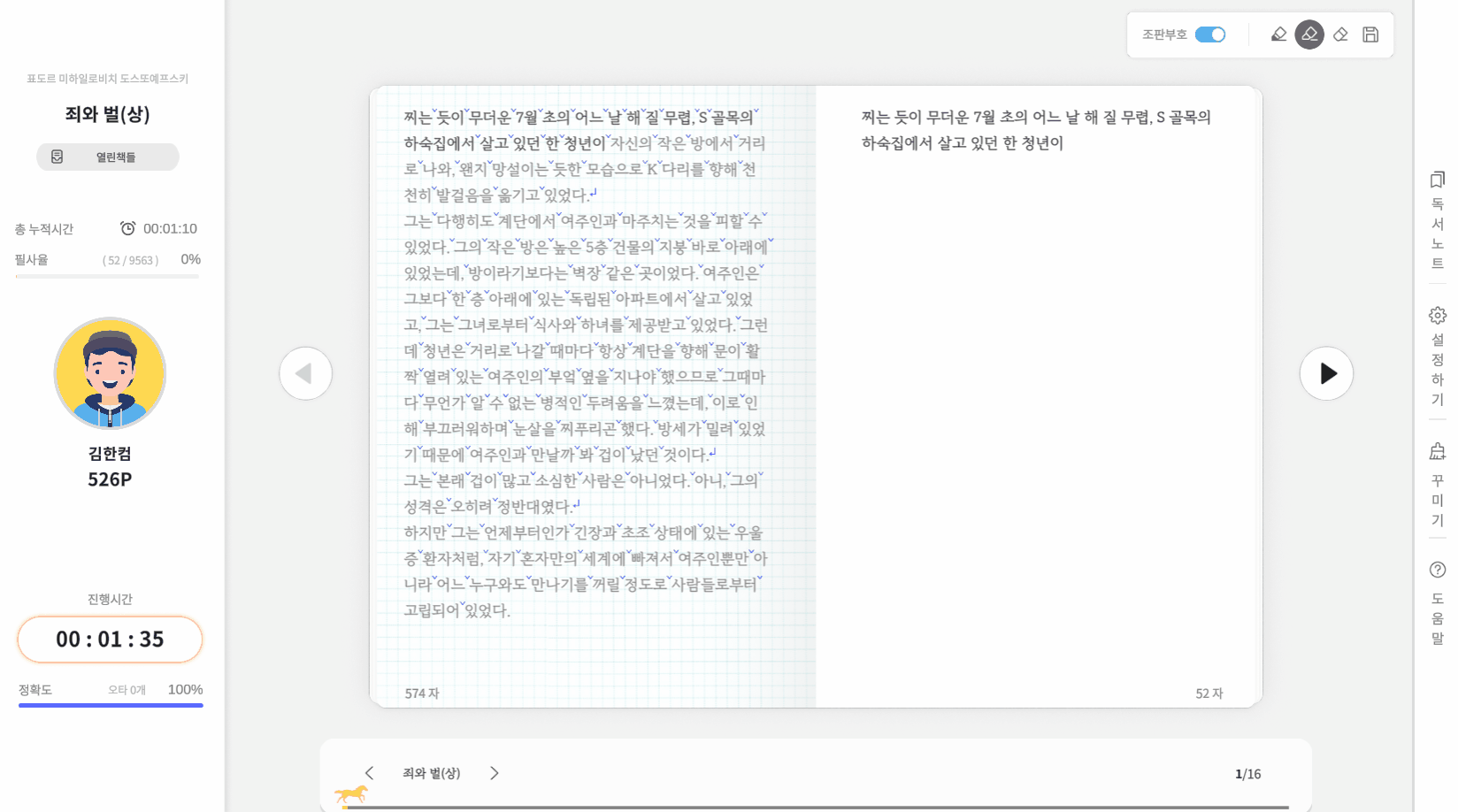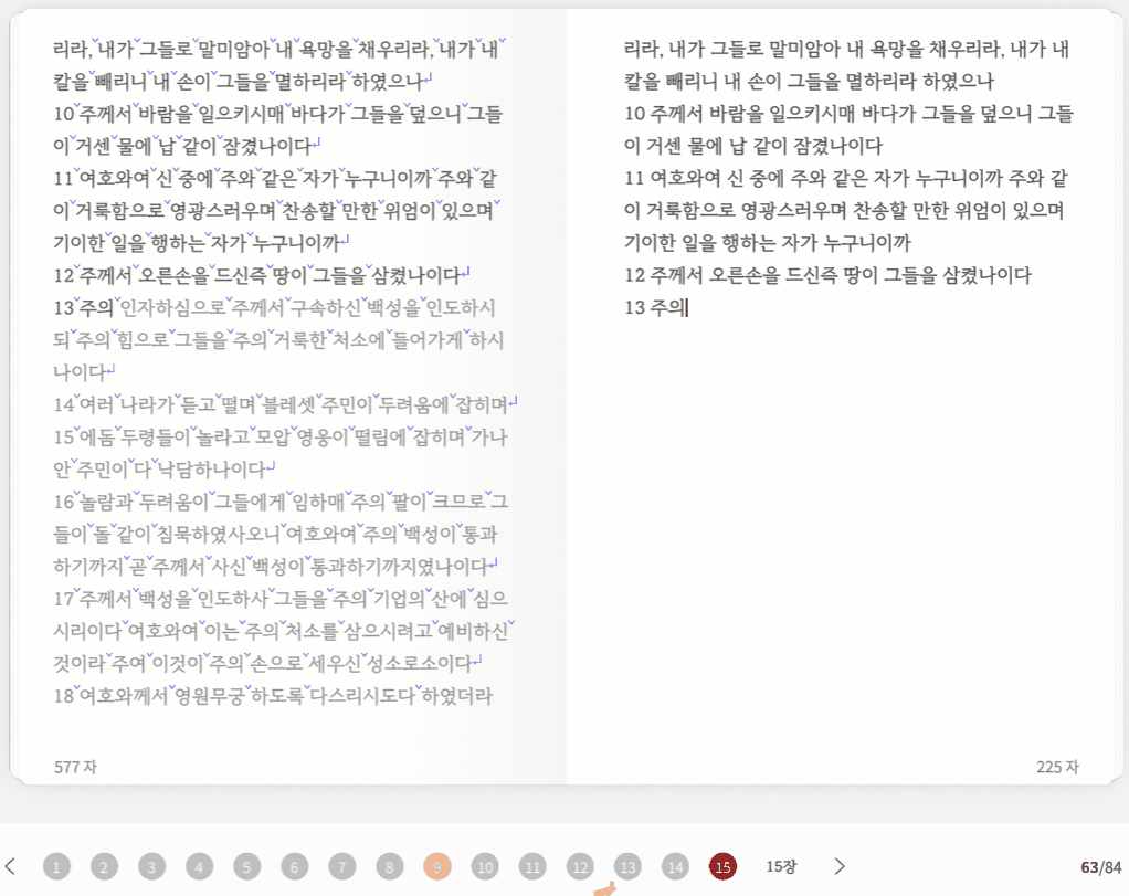 위 화면에서 [필사 구매하기]를 클릭하면 구매 포인트를 소진하게 됨과 동시에 해당 필사 책을 영구 소장하게 됩니다.