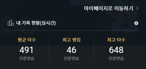 회 도전하고, 한컴타자 마이페이지의 타자 활동에서 달라진 타수를 확인해 봐요