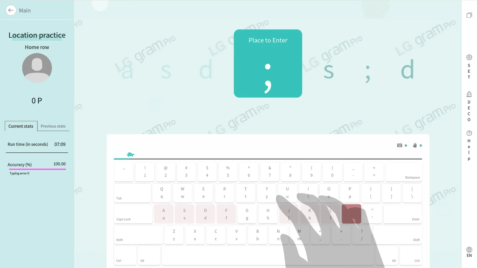 In location practice, you will use all your fingers except your thumb. Later, when typing words or characters, your thumb is used for the space bar. This not only exercises your fingers but also engages your brain.