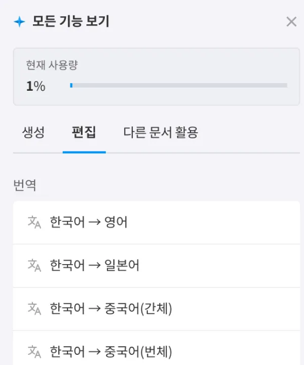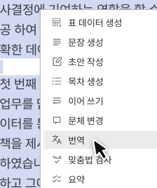 아래 3가지 방법으로 한컴독스 AI를 이용해 번역 기능을 이용할 수 있습니다.