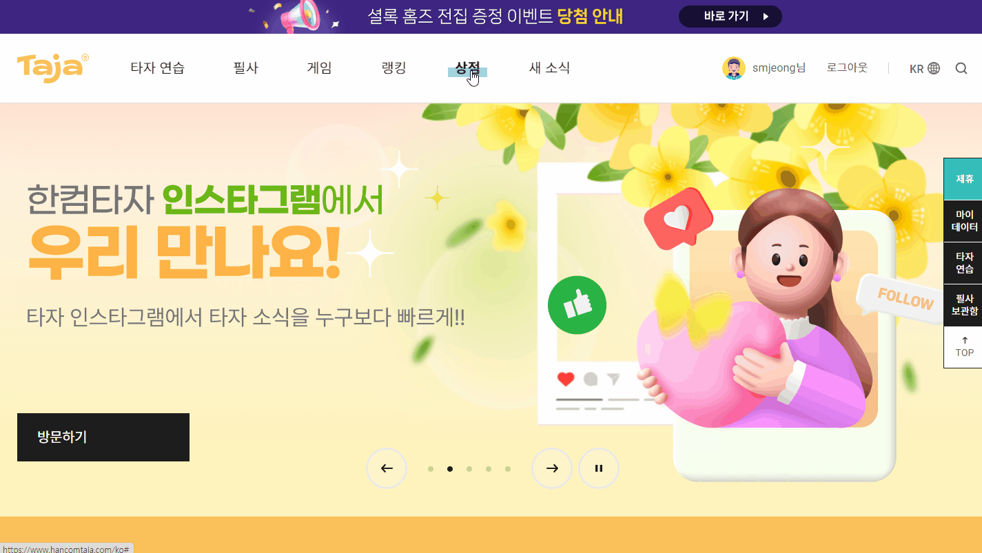 한컴타자의 다양한 이벤트 소식은 카카오톡 알림톡으로 보내드립니다.