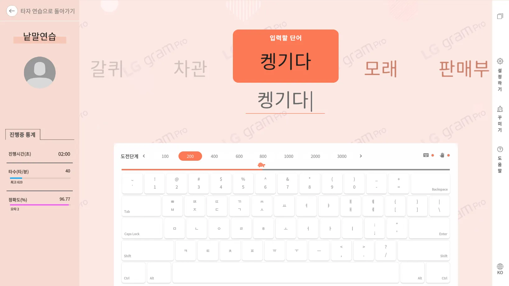 한컴타자 낱말 연습에서 한 글자씩 정확하게 입력하면 나도 모르게 손과 뇌가 낱말을 기억하게 돼요. 채팅할 때, 이메일 작성할 때, 인터넷 검색할 때 정확한 단어를 입력하면 모든 것이 일사천리~