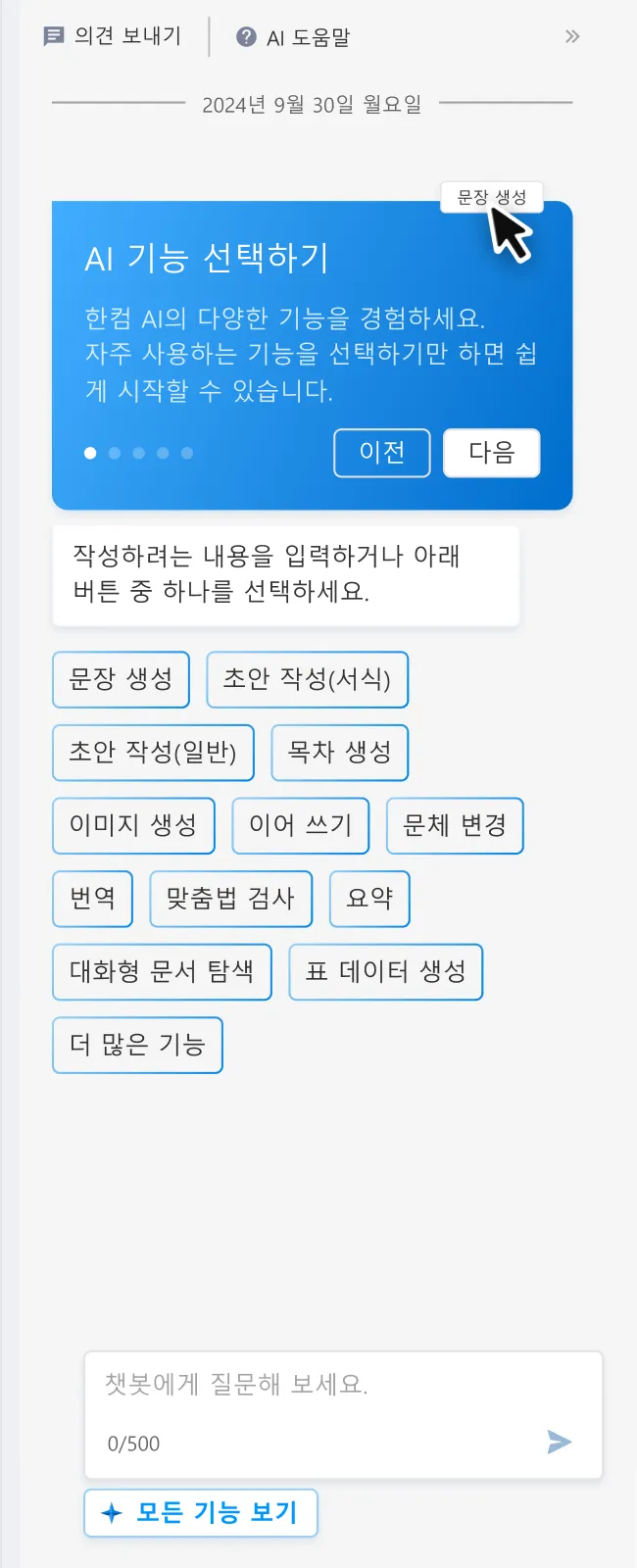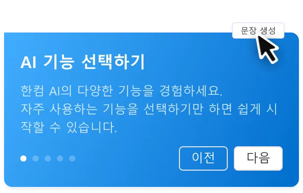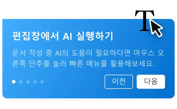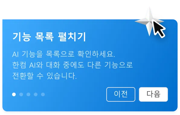 안내 팝업 및 안내 가이드(도움말)를 통해 한컴독스 AI를 확인해 보세요.