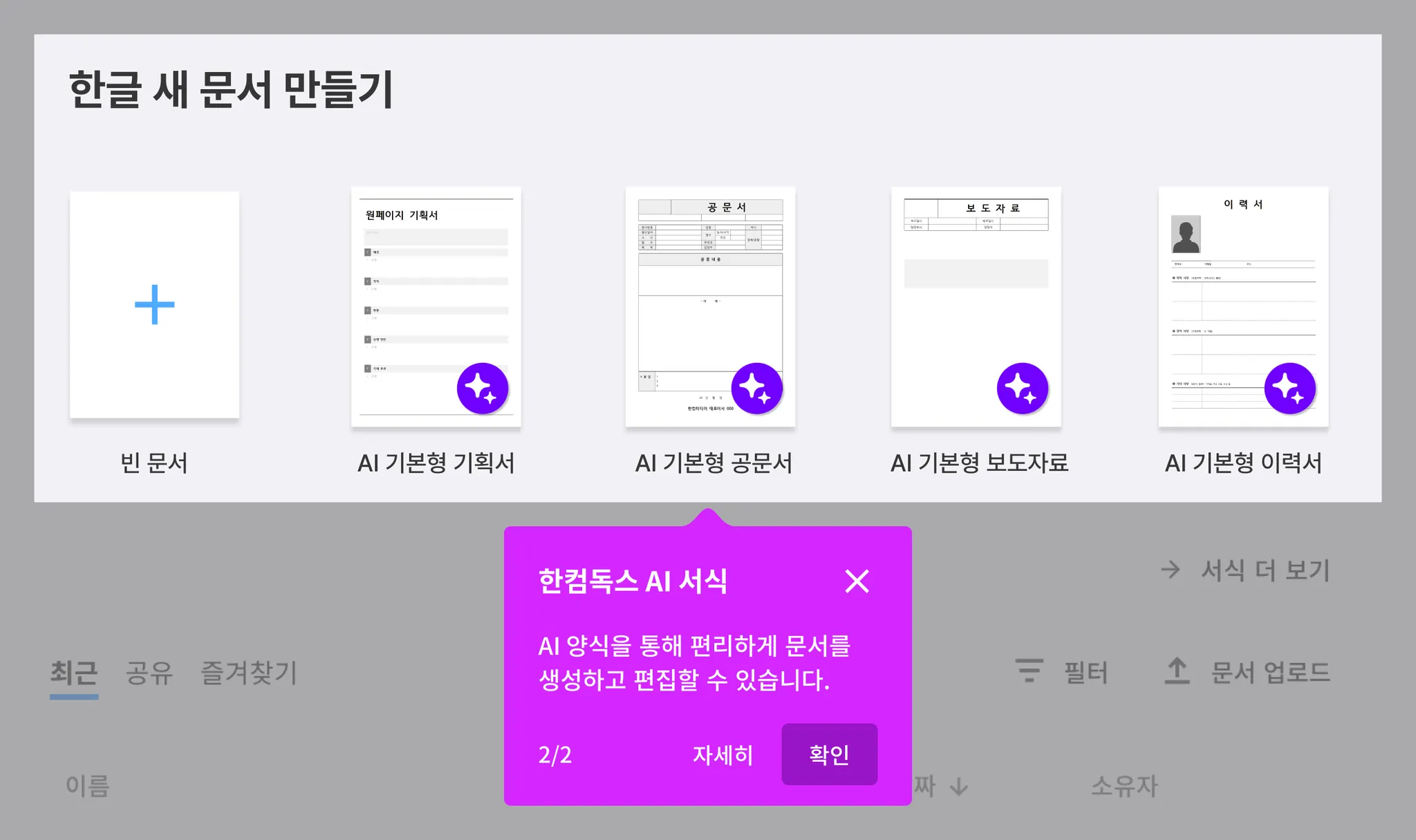 한컴독스 개인용 및 기업용을 구독하는 분들은 한컴독스AI 기능이 제공됩니다.