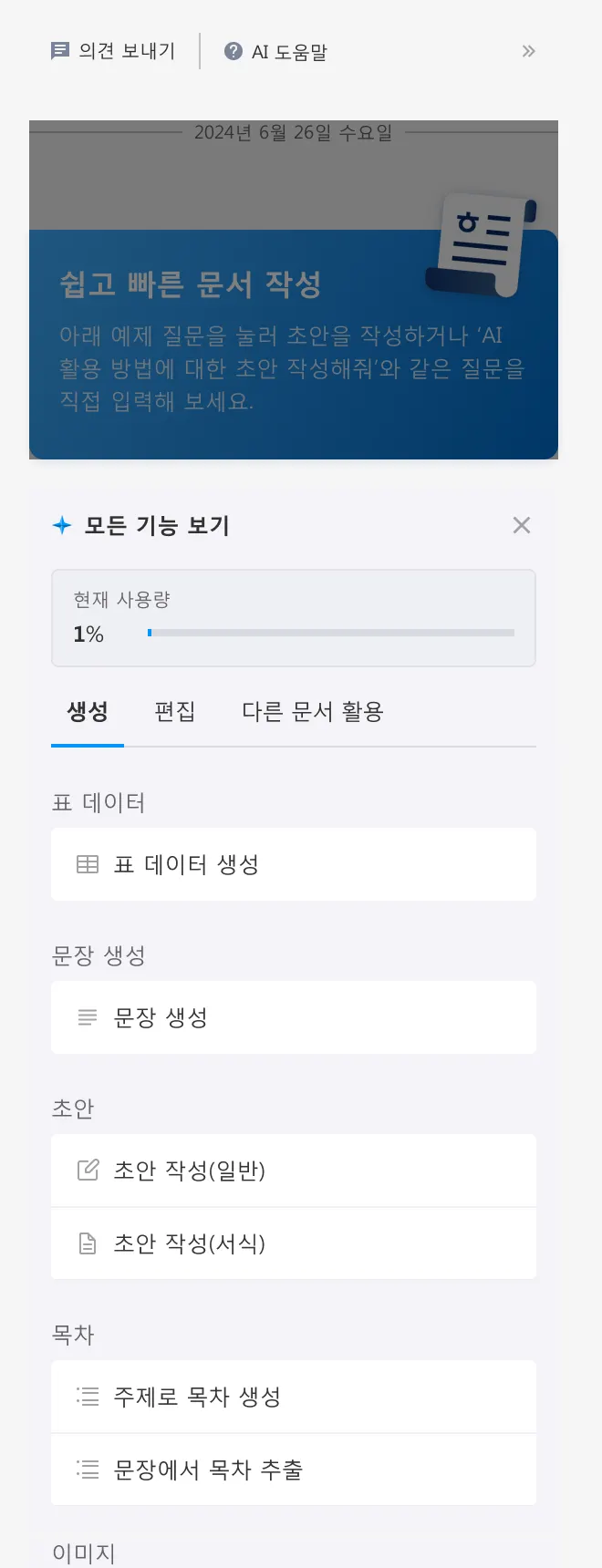 초안 작성(서식) : AI를 활용한 자동 템플릿 문서 생성 기능