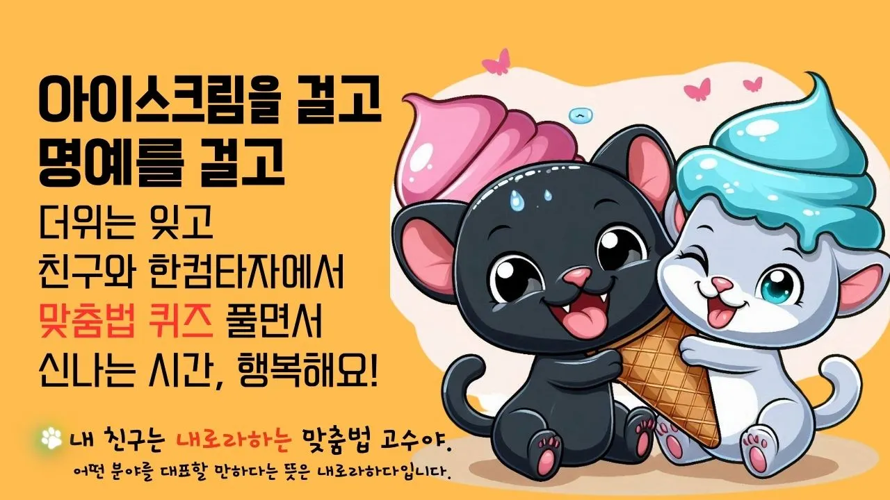 더 많이 맞힌 친구는 내로라하는 맞춤법 고수된 기념으로 아이스크림을 삽니다.