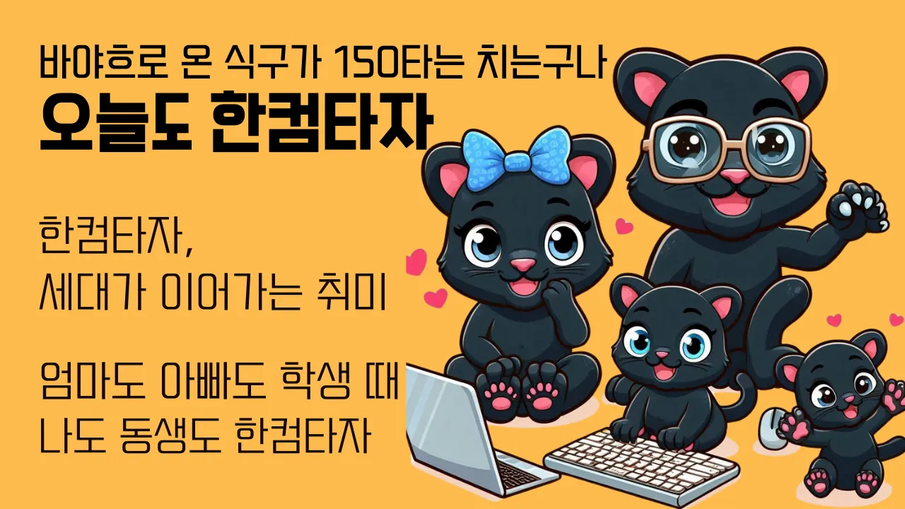 자녀가 아직 100타 미만이라면 150타가 될 수 있도록 격려해 주세요. 150타 정도가 되면 타이핑에 속도를 낼 수 있어서 능동적으로 타자 연습을 하게 될 거예요. 문해력과 어휘력까지 올려주는 한컴타자! 재능을 숨기지 말고 한컴타자에서 활약~
