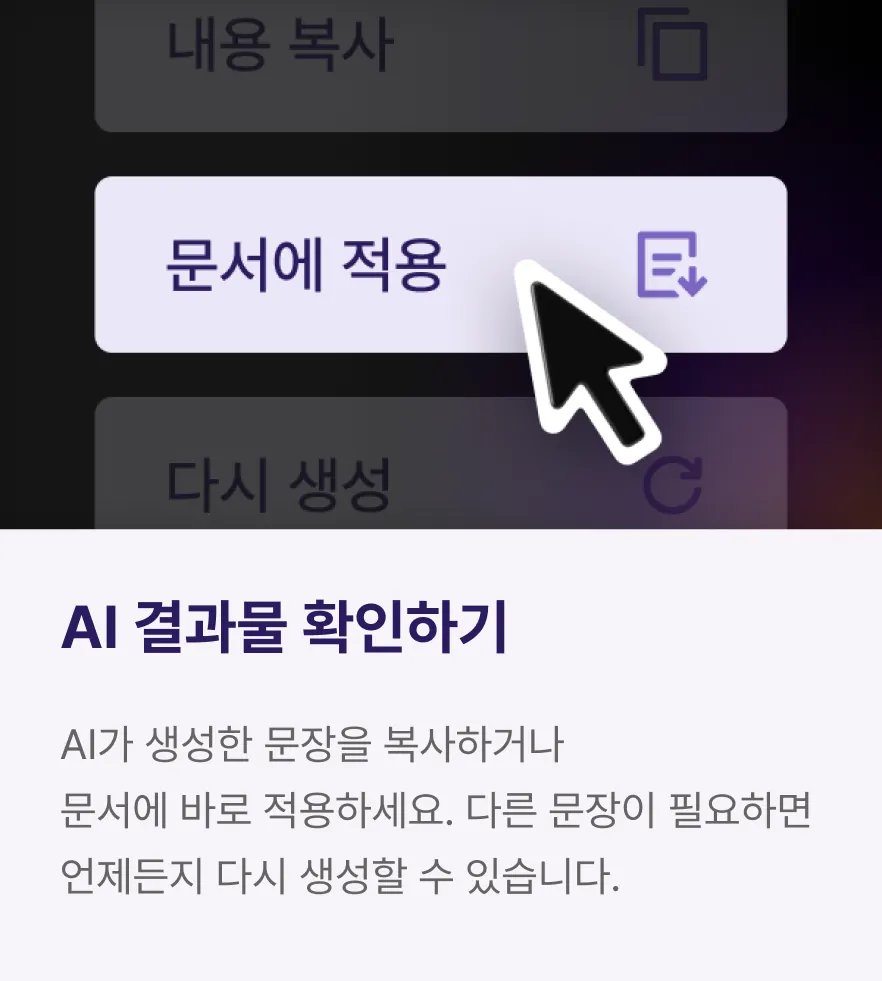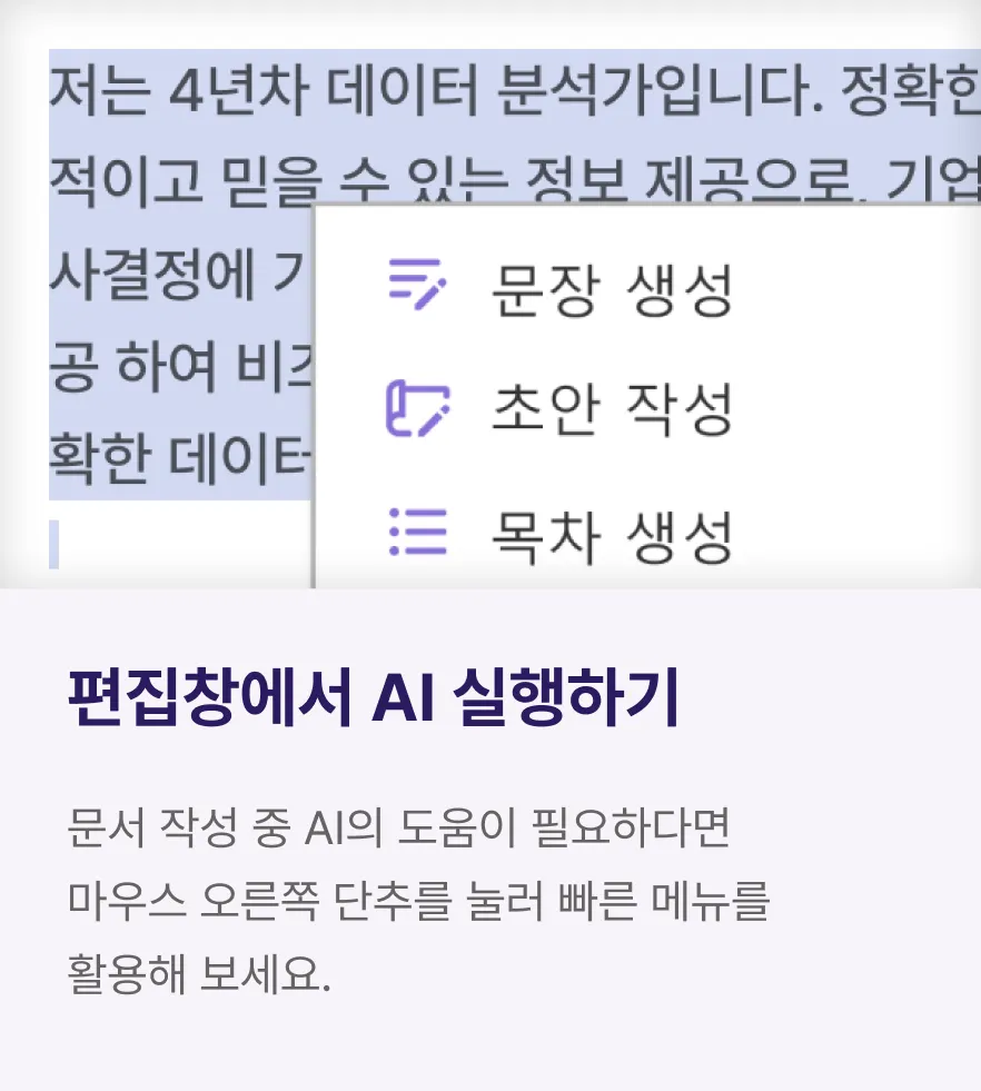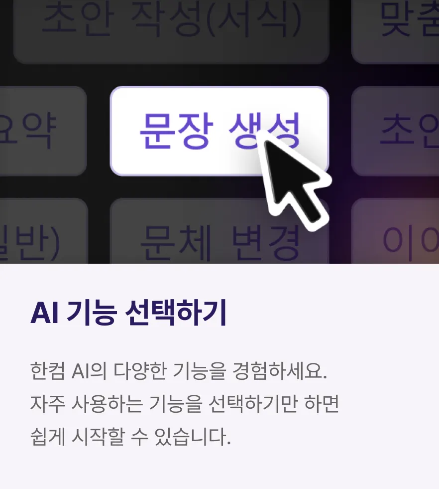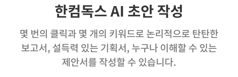 한컴독스 개인용 및 기업용을 구독하는 분들은 한컴독스 AI 기능이 제공됩니다.