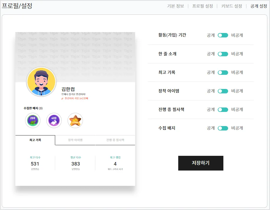 [공개 설정]을 통해 프로필 공개 여부를 설정할 수 있습니다.