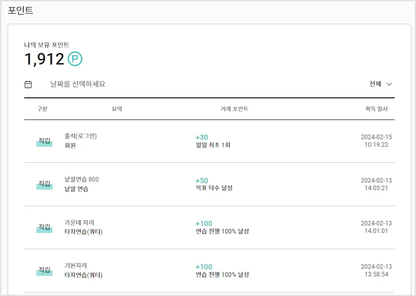 [포인트]에서는 보유 포인트, 포인트의 적립, 소진 여부를 확인할 수 있습니다.