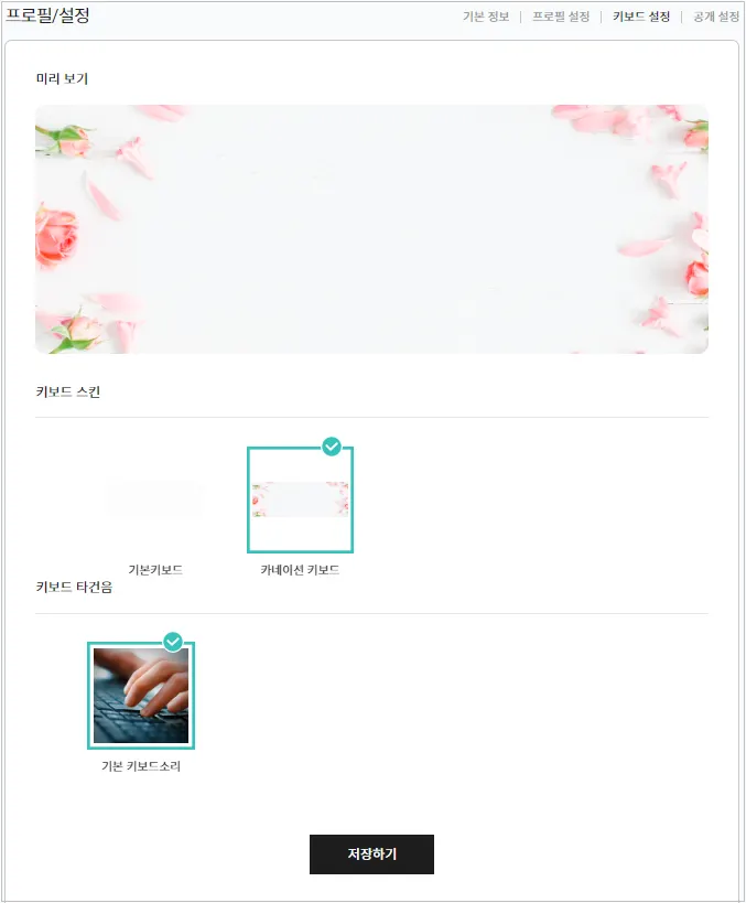 [키보드 설정]을 통해 타자 키보드 스킨과 타건음 등을 설정할 수 있습니다.