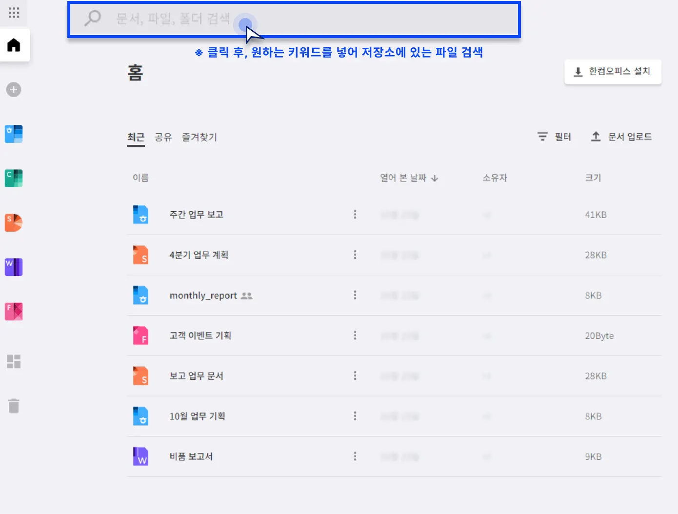 한컴독스는 파일의 제목이나 파일 포맷 뿐만 아니라 저장소에 업로드한 경우, 본문 검색을 제공합니다.