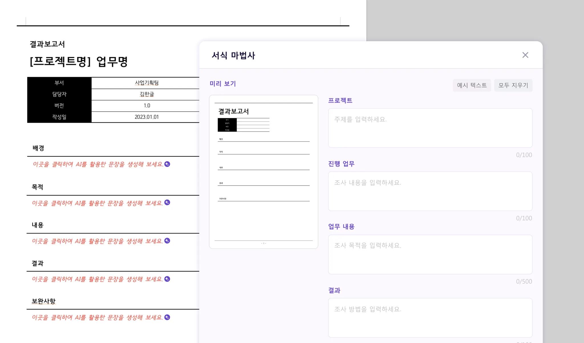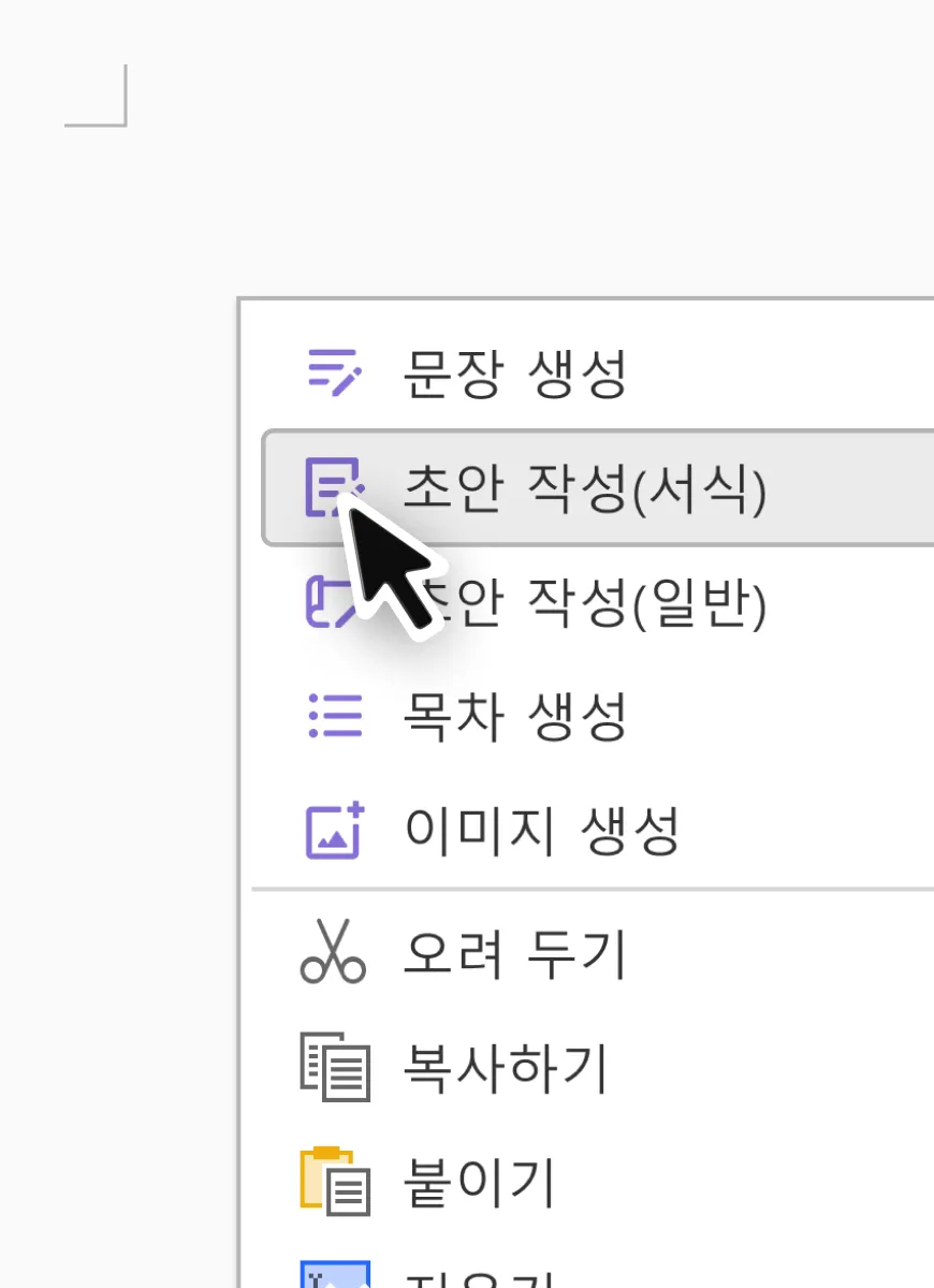 2. 한컴독스 AI를 통해 초안 작성(서식)