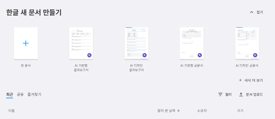 <한컴독스 AI 서식 진입시>