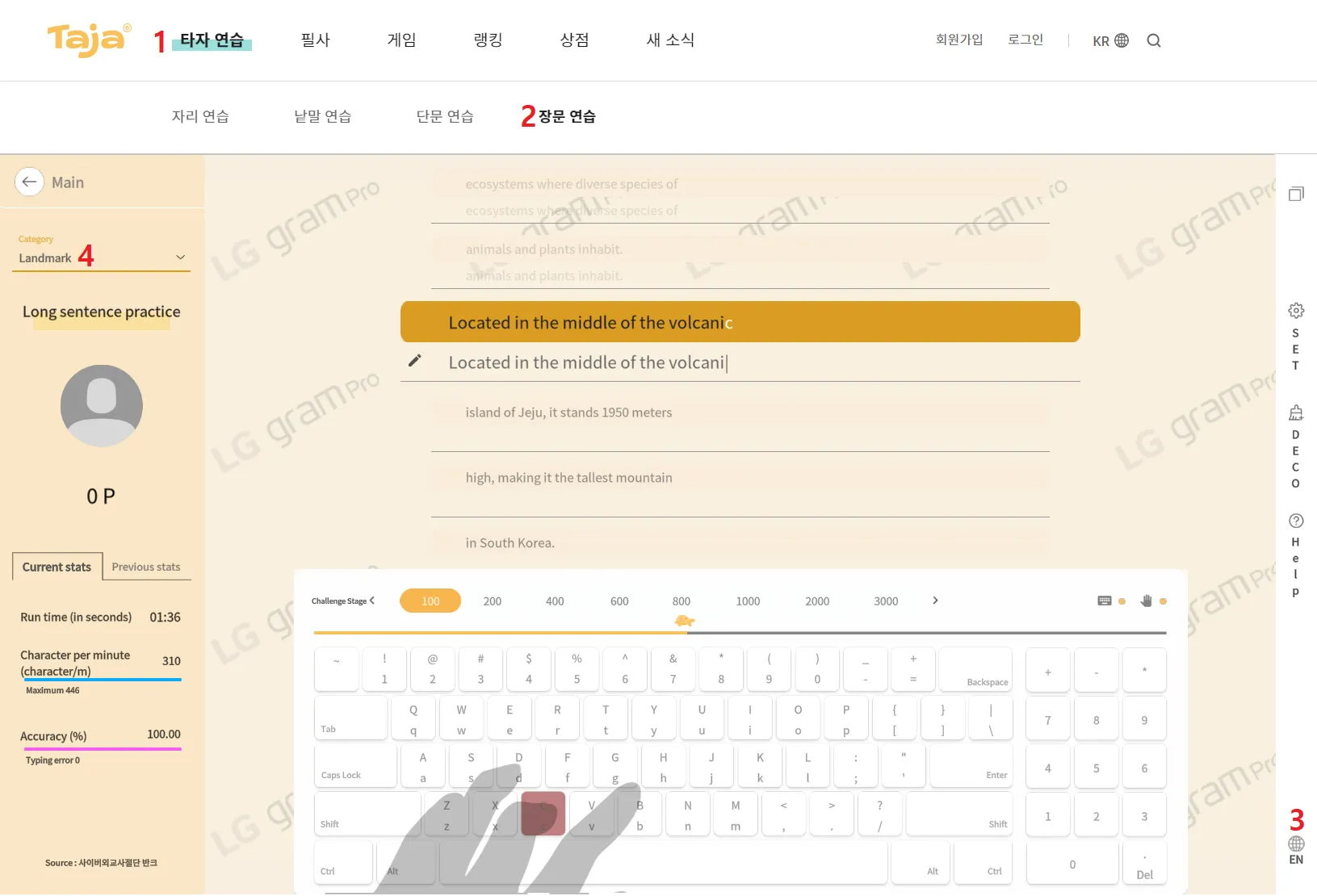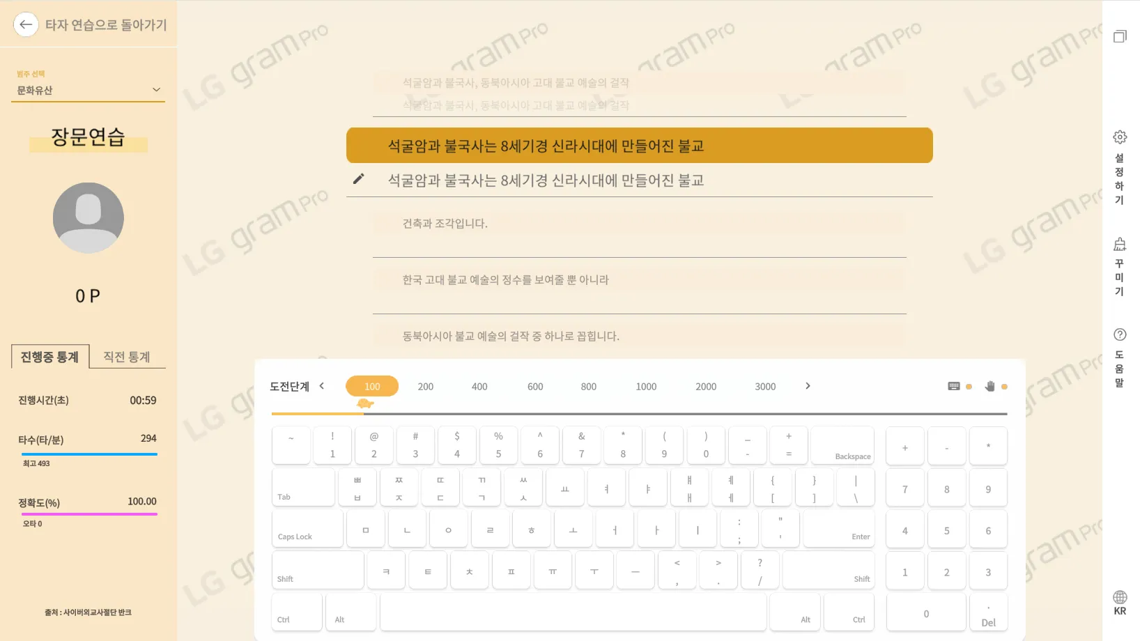 한라산, 수원화성, 석굴암과 불국사를 영어 콘텐츠로 타자 연습