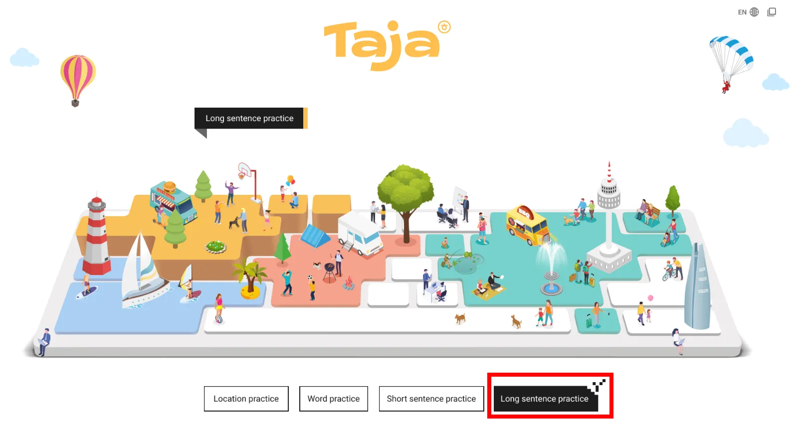 아이콘을 클릭해서 영어로 변경한 다음 Long sentence practice 클릭하면 영어 장문 화면으로 바로 이동해요.