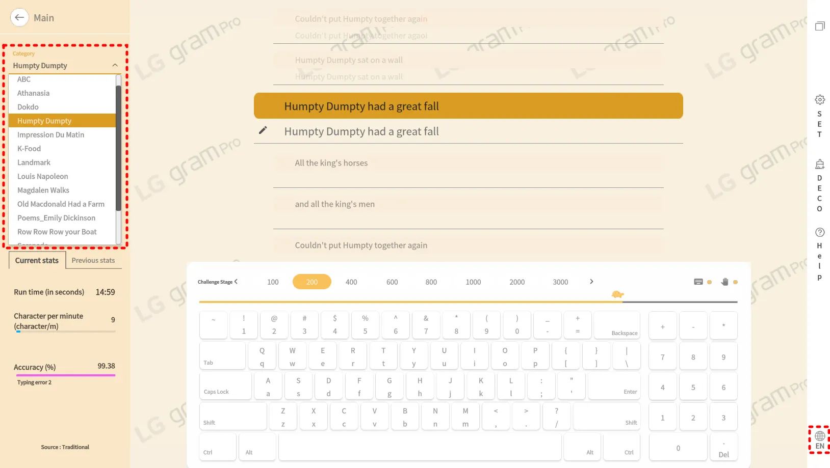 타자 화면의 왼쪽 Category에서 Humpty Dumpty 콕~ 찍어 주세요.