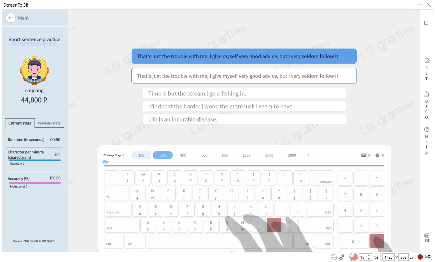 타자를 잘 하려면 한컴타자에서 연습하세요~! 한컴타자에서 단문 연습으로 다양한 속담이나 명언을 만나보세요
