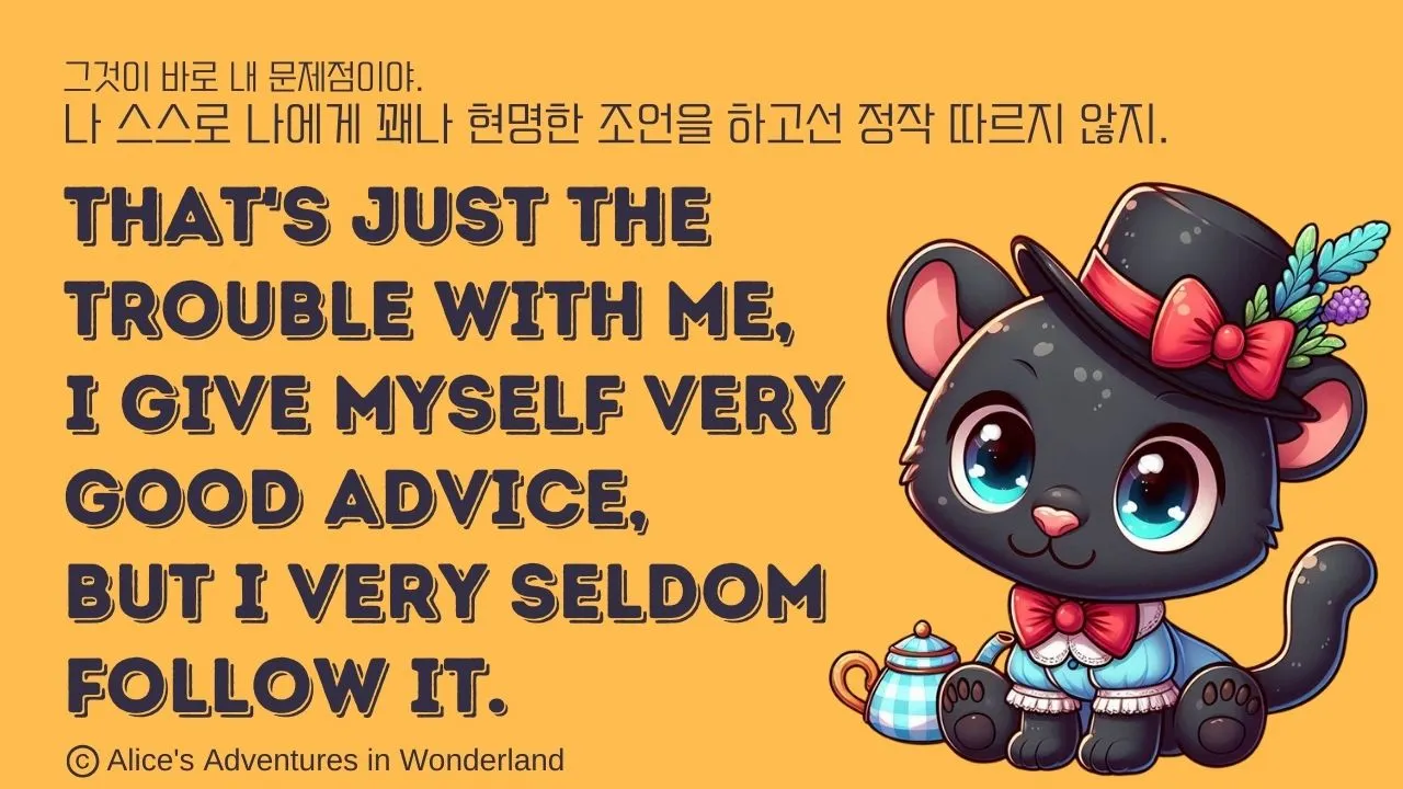 스스로에게 조언도 하고, 또 그 조언을 따르지 않는 자신을 파악한 이상한 나라의 앨리스~