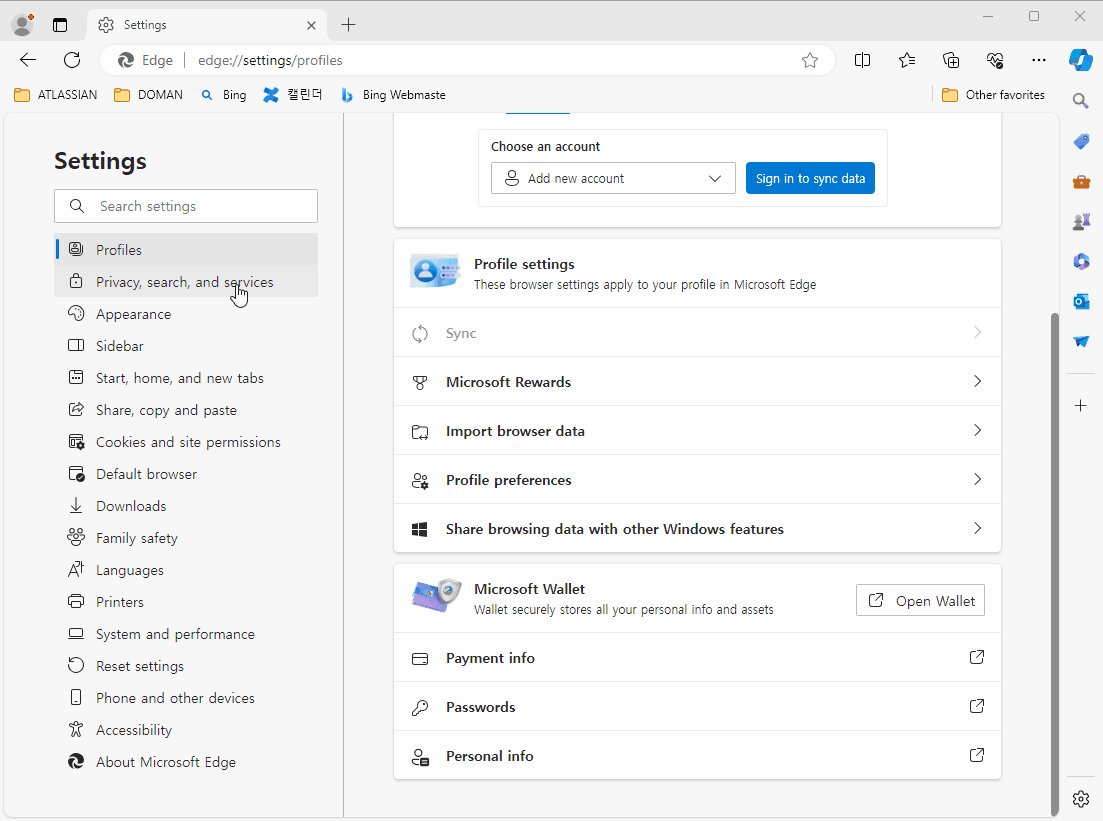 Navigate to Privacy, search, and services on the left pane, then click Choose what to clear under Clear browsing data.