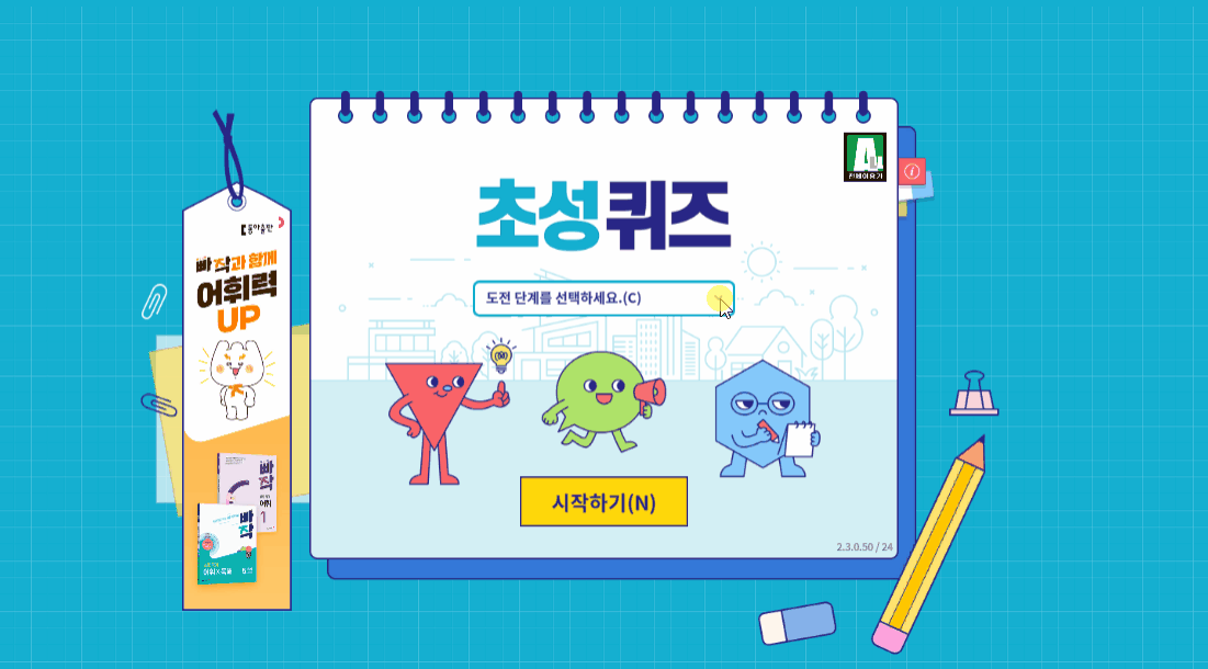 초성 퀴즈의 콘텐츠와 난이도는 계속 업데이트되니 자주 이용해 주세요. 바른 독해의 빠른 시작, 빠작으로 자녀의 어휘력과 내 어휘력을 챙겨보세요