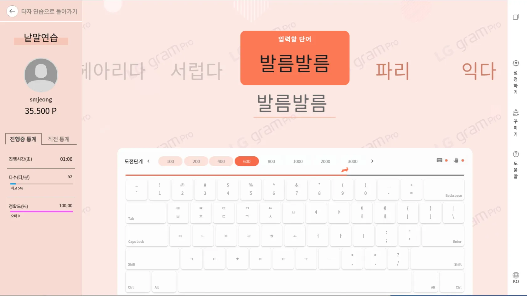 한 글자씩 정확하게 입력하면 나도 모르게 손과 뇌가 낱말을 기억하고 있을 거예요. 평소에 사용하지 않는 의성어와 의태어도 머릿속 어휘집에 넣어 봐요!